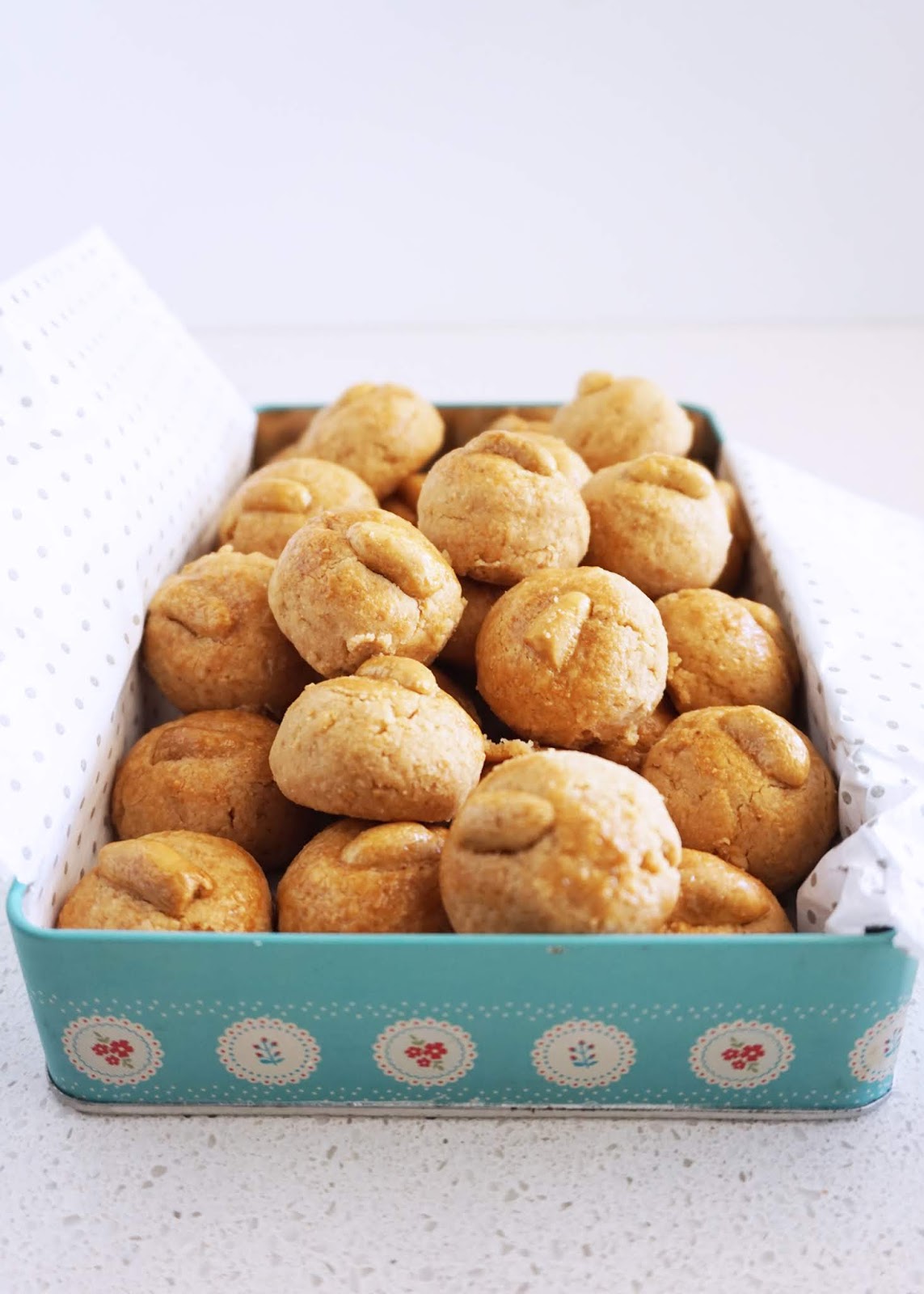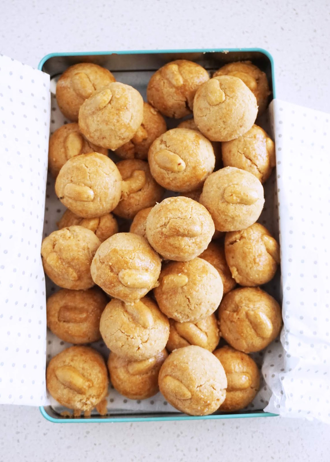 Salty and sweet peanut balls that crumble and melt into a puddle of peanut butter in your mouth. Like eating peanut butter straight from the jar, the crunchy type. Dangerously moreish and only requires 5 ingredients.