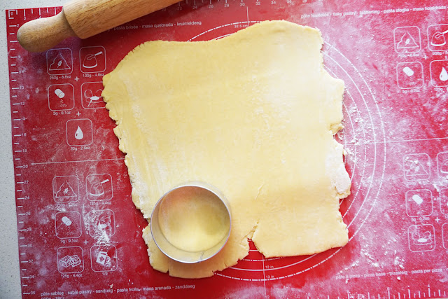 Cut out circles with cookie cutter and line the pastry in the muffin tins. Refrigerate until ready to use.