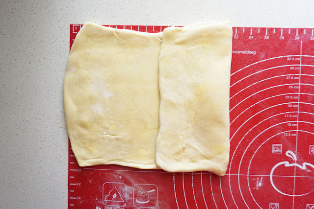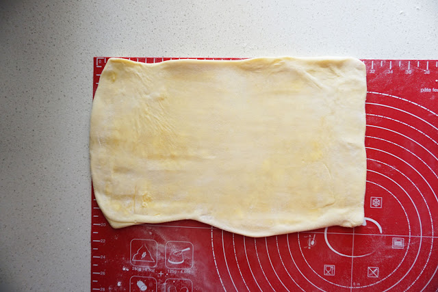 Now the final turn. Roll out pastry into 34cm long and 20cm wide.